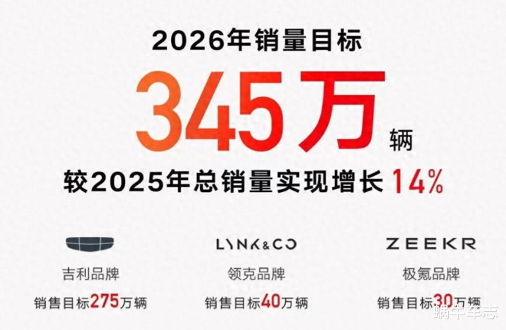 2025年各大车企都交了答卷,吉利汽车在竞争激烈的中国车市里取得了全年销量超302.45辆的历史好成绩,同比增长39%,超额完成300万辆目标,到了2026年马年,吉利汽车更是铆足了干劲,计划挑战345万辆销量的目标。