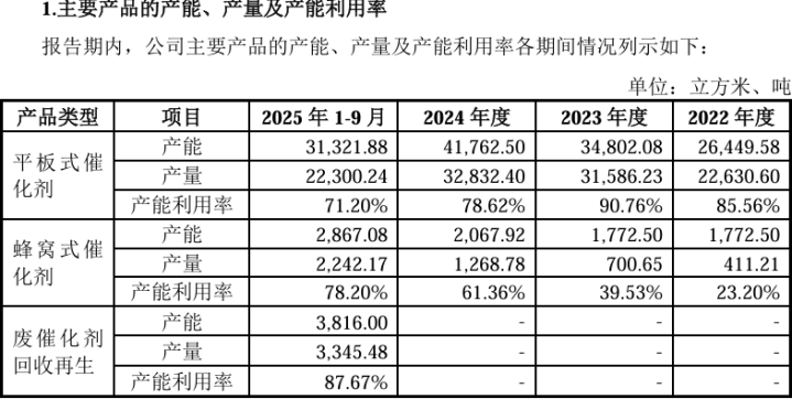 商场增量受限当先体当今产能诓骗率的下滑上。招股书清晰,华电光大平板式催化剂产能诓骗率连年握续下滑,2022年为85.56%、2023年增至90.76%(峰值)、2024年为78.62%、2025年前三季度再度降至71.20%。