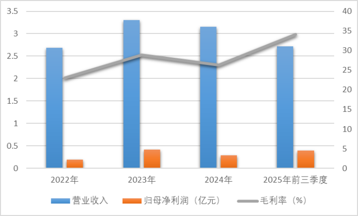 2022年至2025年前三季度(下称“呈报期”),华电光大完满贸易收入永别为2.69亿元、3.30亿元、3.15亿元和2.72亿元,净利润永别为1906万元、4230万元、2879万元和4032万元。