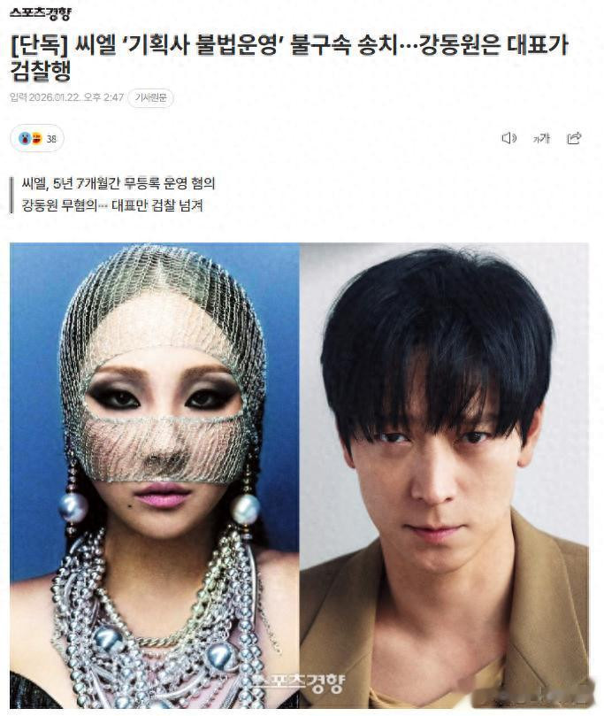 据韩国媒体报道,韩国知名演员姜栋元与女团2NE1成员CL各自所属的经纪公司,因涉嫌违反《大众文化艺术产业振兴法》中关于“大众文化艺术策划业”的强制注册规定,近日被首尔龙山警察厅正式移送至首尔西部地方检察厅。