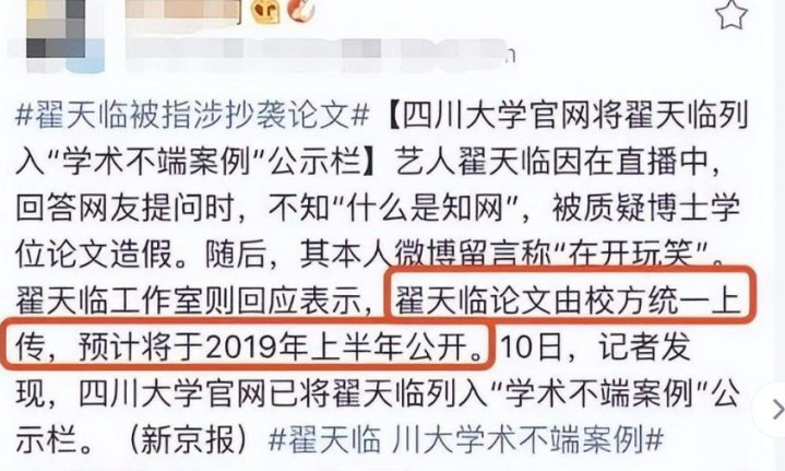 如果说前面的案例是文化素养不足,那翟天临的事,就是触碰了学术诚信的底线,也是“文盲”乱象里最极端的例子。