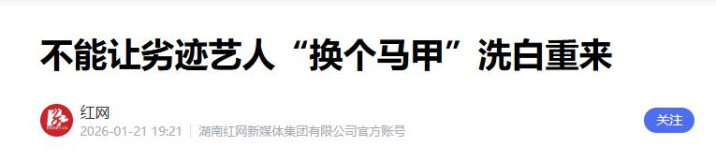 红网一句话,更是直戳要害:“不能让劣迹艺人‘换个马甲’洗白重来。”