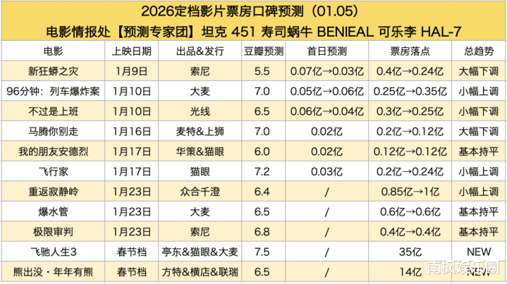 再加上“新人旧人团建”笑点大概率也错不了,那么这回的合家欢档确实是稳了。