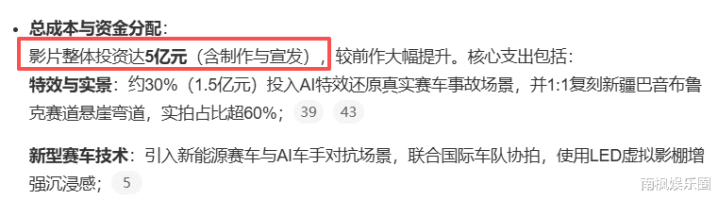 网传《飞驰人生3》投入5个亿,是整个IP中成本最高的作品。