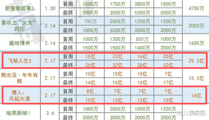 即使是其他家的媒体,预测出来的数据,《飞驰人生3》也是全方位吊打《镖人》的。