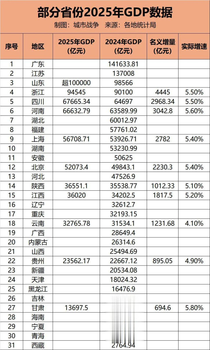 此外,多个省份已公布2025年经济数据,整体呈现稳中有进的发展态势: