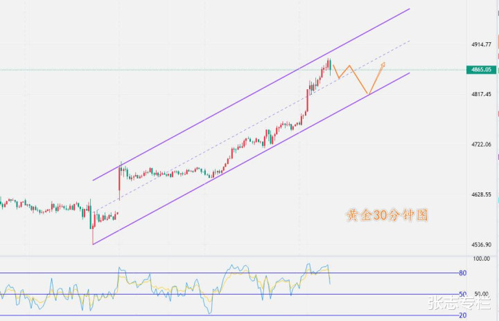 短线来看,今天已经涨了120美金,追高的风险很大,技术指标上也需要修正,如果能够在欧美时段给到4830--4815可以考虑如此接多。如果这里也跌破,就要等4800甚至4790了
