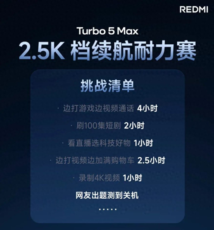最近,REDMI红米手机带来了“Turbo 5 Max 续航耐力赛”。