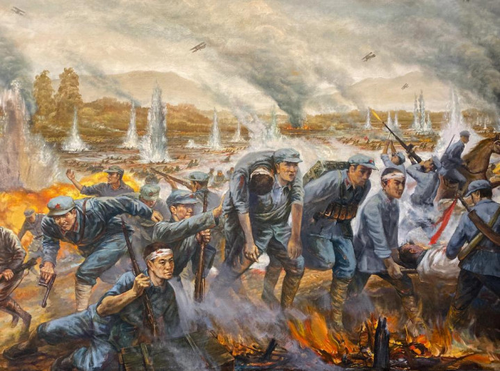 国民党军队从四面八方压过来,飞机在头顶上盘旋轰炸,炮弹像雨点一样砸下来。