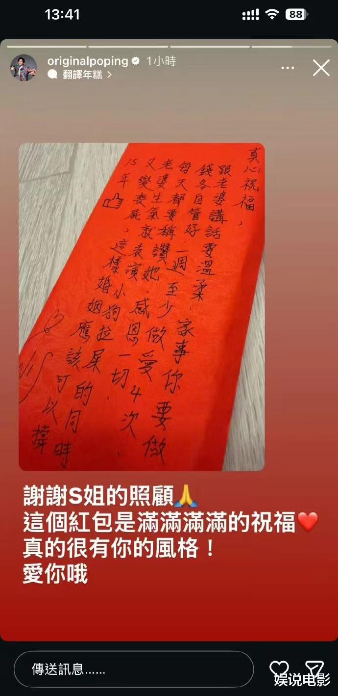 陈汉典在社交账号晒出小S送的红包,祝福语也曝光,小S这七条建议,可能也是比较真诚的祝福。