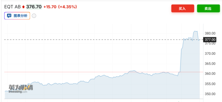 受此消息影响,在斯德哥尔摩上市的EQT开盘直线拉升,盘中一度涨近5%。