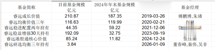 然而,睿远基金公司2024年末旗下五只公募基金规模为411亿元,2025年末大约649亿,规模依然涨了不少。