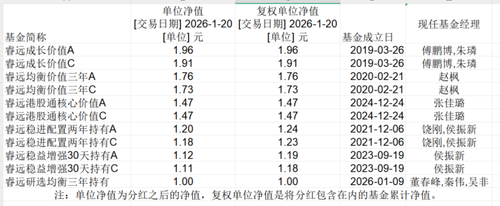 国内公募基金的发行价基本为1元,目前,睿远基金的所有基金净值都在1元以上。