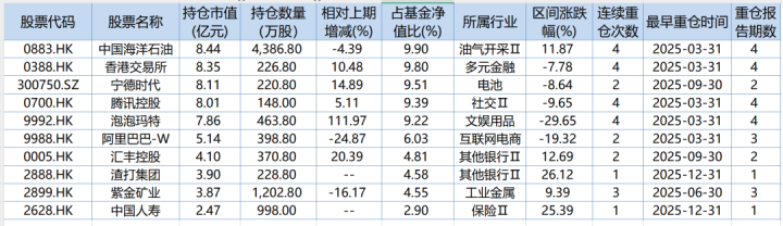 从结果来看,前十大重仓股,只有宁德时代是A股公司,其余皆为港股。