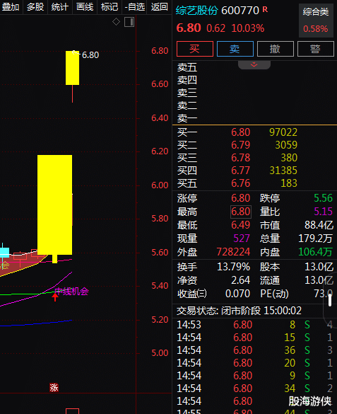 三、综艺股份(600770)该股近期上涨的逻辑有哪些呢?