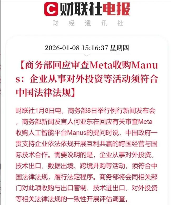 美国巨头Meta要收购Manus的消息刚传开时,不少人还在感慨这是中国技术走向全球的高光时刻,结果转头就被商务部泼了冷水。